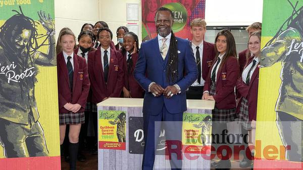 Romford Recorder • 24th March 2022 Levi Roots spices up Rainham school's dinners with 'Caribbean flavours' The creator of Reggae Reggae Sauce, Levi Roots, has visited a Rainham school as it welcomes his latest Caribbean creations to its menu.