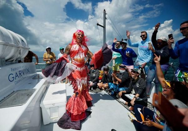 PinkNews | Latest lesbian, gay, bi and trans news • 8th October 2023 Meet the Florida drag queen tagging sharks in a wig and full makeup What do drag queens and sharks have in common? According to Miss Toto, a drag queen in Florida, the answer is simple.“They are both beautiful and demonised,” she tells PinkNews.